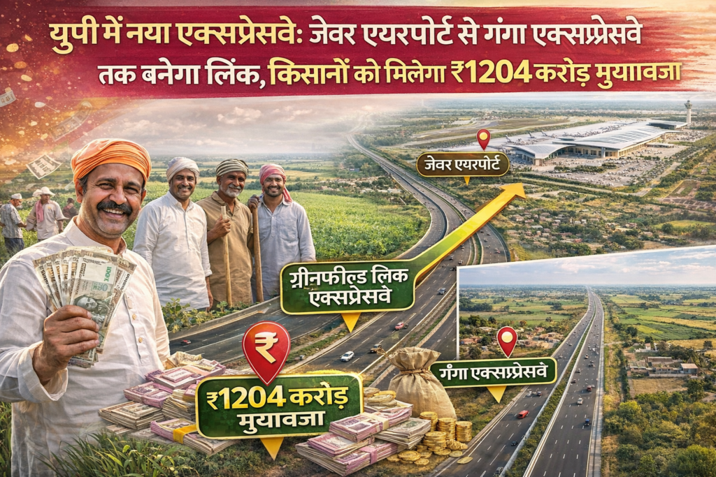 यूपी में नया एक्सप्रेसवे: जेवर एयरपोर्ट से गंगा एक्सप्रेसवे तक बनेगा लिंक, किसानों को मिलेगा ₹1204 करोड़ मुआवजा
